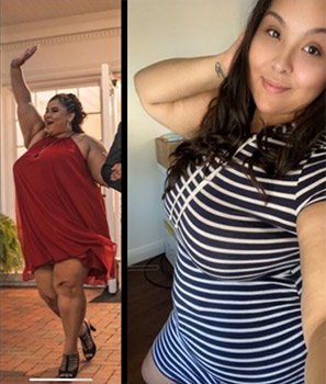 It’s not the best photos but this is when I saw my change for the first time like when I actually saw for myself I believe I was 309 in the red dress or close to it. The photo in the stripped dress was about 3 to 31/2 months post op. It’s been a real roller coaster of emotions but I’m happy and looking forward to losing more weight. No regrets I’m thankful for this tool and hope to continue to slowly reach my goal.